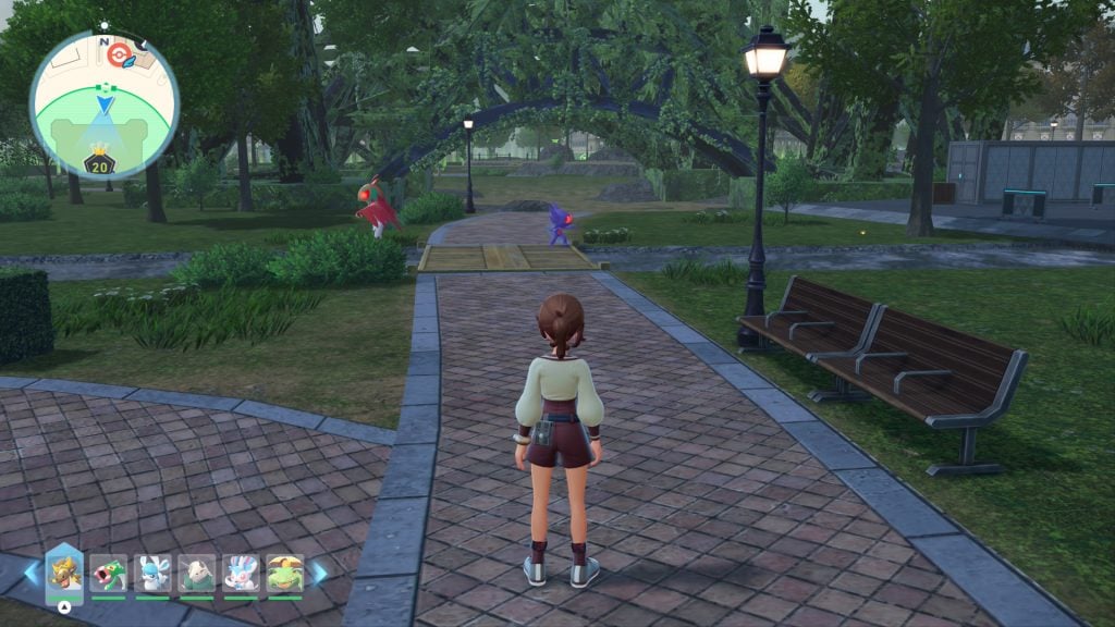 The method listed here comes from a video shared by Austin John Plays, and the steps will reflect the most consistent setup detailed in said video. The very first thing to do is head to the Centrico Pokémon Center and go into Wild Zone 20 from the nearby gate. Go ahead and clear out any Pokémon standing beside the path heading towards the center of the area. Once that is taken care of, go ahead and rest at one of the nearby benches to give you a full day or night to perform the glitch.