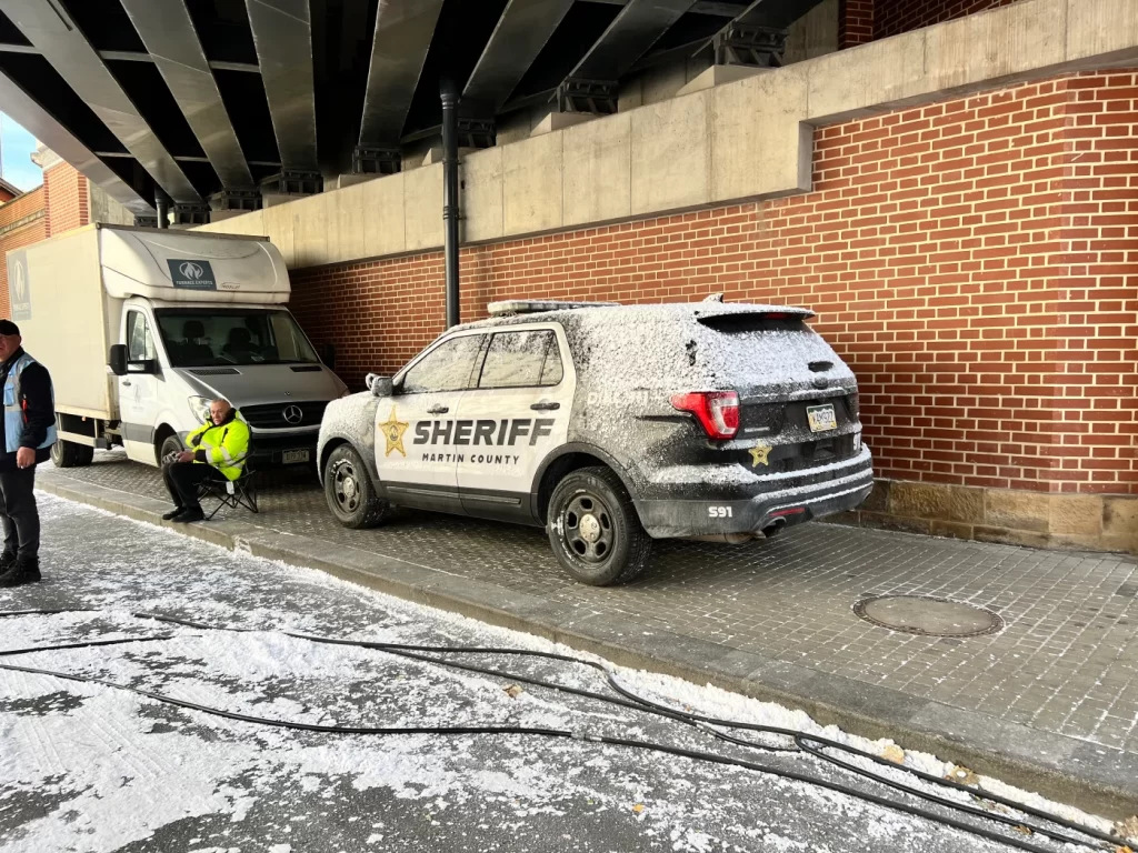 Visible props in the area confirmed the Raccoon City setting, with a city map depicting the frightening fictional locale from the games. Also spotted were burnt-out cars outside of an establishment called Oak Street Diner, as well as a Martin County Sheriff’s vehicle with Colorado plates.