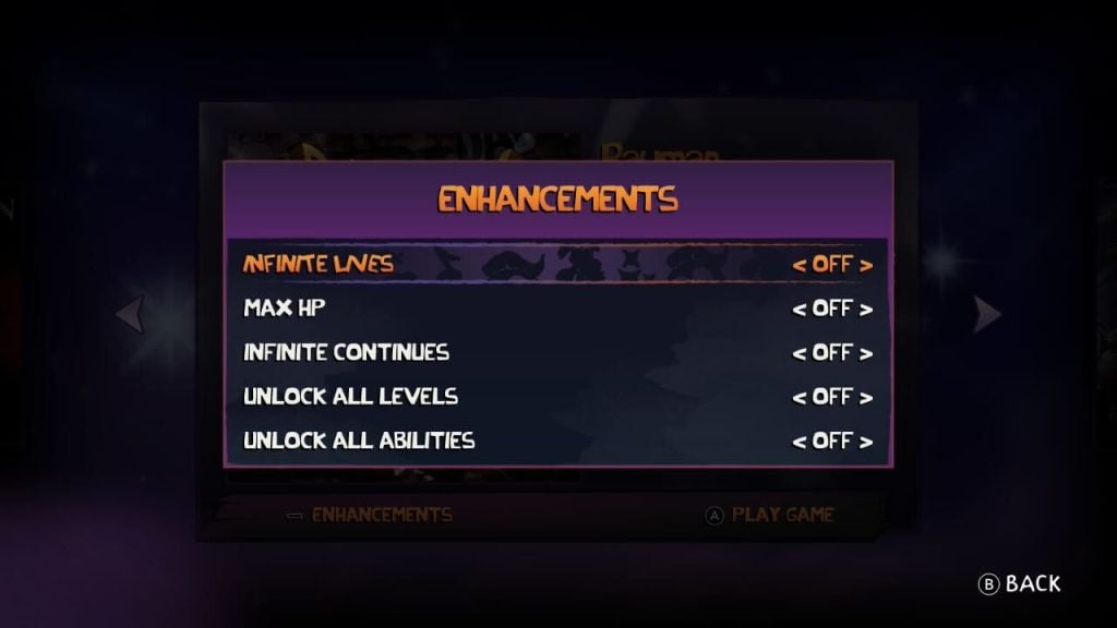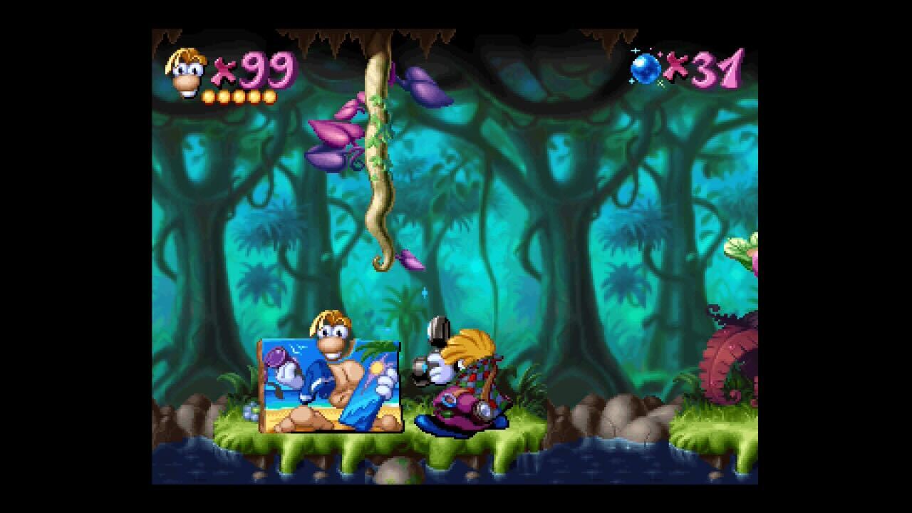 I can’t stress enough how grateful I am for a rewind button and optional toggles for unlimited lives, invincibility, unlocking all abilities or levels, etc. in the PlayStation version. It’s still as notoriously hard as it’s ever been. Band Land onwards (and especially Picture City) don’t play around. Tricky enemy placement and confusing layouts can make this three hour game into a six hour game if you let it. So the legacy quality of life inclusions are appreciated. I can’t help but feel like if this is a party though, I showed up to very little Rayman fanfare. The menus lack music and this could be a bug. There’s ambient noise, but no actual life. I tried checking the Options menu and it includes a toggle for menu music. Nothing. No change. There’s also nothing to unlock. No gallery or additional games. In terms of presentation, this is one of the more barebones Digital Eclipse collections I’ve played in recent memory.