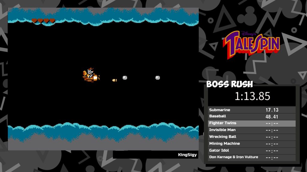 TaleSpin, then, wrapped up the original package with a pretty average shmup. There is a unique mechanic that lets players flip their plane upside, allowing the ability to shoot behind them, but it’s not utilized much. The main levels can also be quite tricky as your plane tilts when going up or down, causing shots to fire at an angle unless holding two directions at once. It results in these stages that can feel unfairly designed, but then you get to the boss fights, and they are so ludicrously easy that I’m not sure what happened. It’s very uneven, that’s for sure.